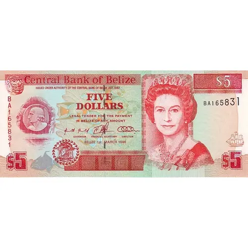 Central Bank of Belize Five Dollars ST. GEORGE`S CAYE $5 |
