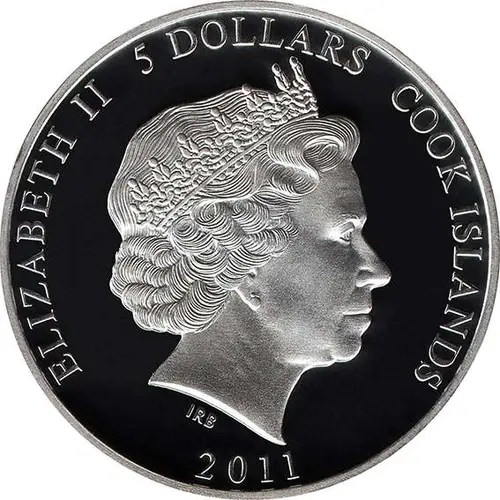 | Obverse lettering | ELIZABETH II 5 DOLLARS COOK ISLANDS 2011 |