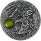 Popis rubu A wonderful and detailed image of Tonatiuh, an aztec sun deity of the day sky and ruled the cardinal direction of east, with a marvellous Olivine insert as a symbol of the sun