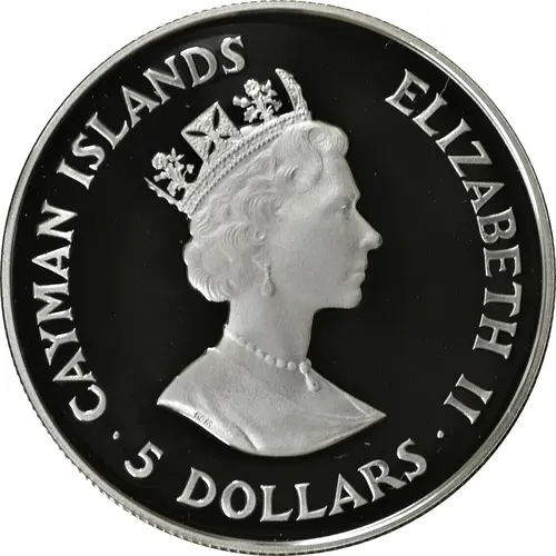 | Obverse lettering | CAYMAN ISLANDS ELIZABETH II RDM ·5 DOLLARS· |