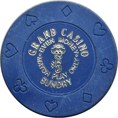 | Obverse lettering | GRAND CASINO EVEN MONEY $5 MATCH PLAY ONLY SUNDAY |