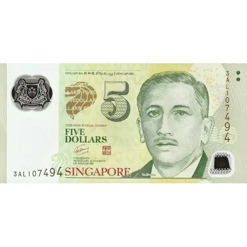 SINGAPURA 新加坡 சிங்கப்பூர் SINGAPORE THIS NOTE IS LEGAL TENDER FIVE DOLLARS CHAIRMAN MONETARY AUTHORITY OF SINGAPORE SINGAPORE Yusof bin Ishak (Translation: Singapore (in Malay, Chinese, Tamil and English). This note is legal tender. Five dollars. Chairman. Monetary Authority of Singapore.) |