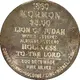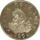 Obverse description Lion reclining on a grassy plane beside a river surrounded by lettering in the Deseret alphabet with the date 1860 below.