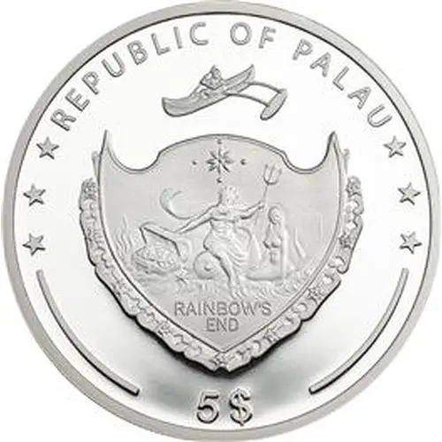 | Obverse lettering | REPUBLIC OF PALAU RAINBOW`S END 5$ |