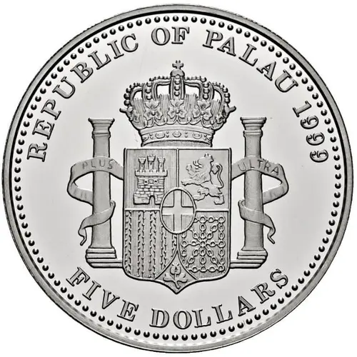 | Obverse lettering | REPUBLIC OF PALAU 1999 FIVE DOLLARS |