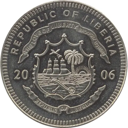 | Obverse lettering | REPUBLIC OF LIBERIA THE LOVE OF LIBERTY BROUGHT US HERE 20 06 REPUBLIC OF LIBERIA |