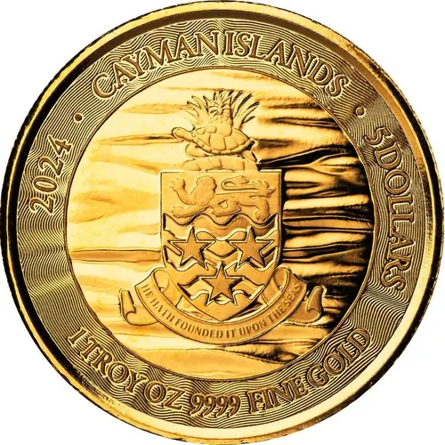 | Obverse lettering | 2024 · CAYMAN ISLANDS · 5 DOLLARS HE HATH FOUNDED IT UPON THE SEAS 1 TROY OZ 9999 FINE GOLD |