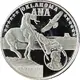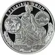正面描述 Allegorical figure of Nomisma (Money) seated with an arm resting on the Oklahoma Quarter from 2008. Replacing the date is the signature of the designer of the quarter, Susan Gamble. To her right is a coin shape with the arms of Ascension Island, silver weight and purity.