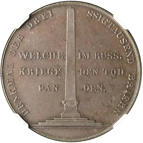 Obverse lettering DENKMAL DER DREISSIGTAUSEND BAIERN WELCHE IM RUSS. KRIEGE DEN TOD FAN DEN