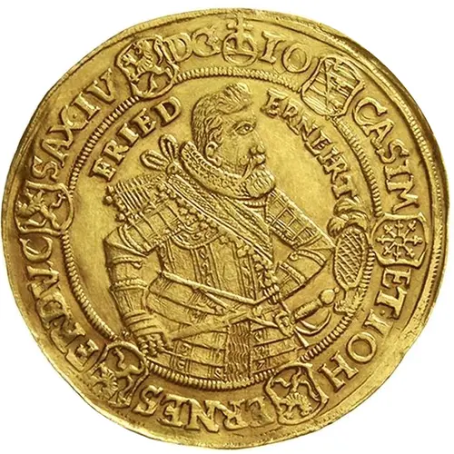 | Reverse description | 1/2-length figure of Johann Ernst II to left divides date. |