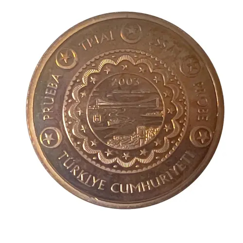 | Obverse lettering | PRUEBA TRIAL ESSAI PROBE 2003 TÜRKIYE CUMHURIYETI |
