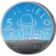 | Reverse description | In the background, the view of the sky and the sea that inspired the artist. Arch-shaped, at the top, the inscription “IL CIELO” (The sky), title of the celebrated song; in the centre, the stylised and outlined image of Renato Zero in one of his iconic poses; on the left “5 EURO”, the coin’s value; on the right “2025”, year of the coin’s issue and “R”, identifying the Mint of Rome. Rhodium-plated coin with coloured elements. |