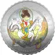 Cocco Bill, hilarious gunslinger and defender of the law, one of Jacovitti`s best known and loved characters, depicted in his typical western landscape with some singular characters who populate the cartoonist`s parodistic cartoons. A round, “REPUBBLICA ITALIANA”; in the exergue, the inscription “COCCO BILL”. Coin with colored elements. |