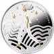 The centre features an image of a person in motion with dot-connecting lines going through his body and resembling a constellation. In the background of this image, a starry sky is depicted at the top of the coin, while a terrain with frosting of different intensity – at the bottom. The inscription `IMANTS ZIEDONIS` is semi-circled to the right along the upper edge of the obverse. |