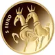 | Aversbeschreibung | The obverse of the coin depicts two horses with their right legs raised up and with crowns upon their heads, the inscription `5 EURO` is semi-circled to the left of the coin. |