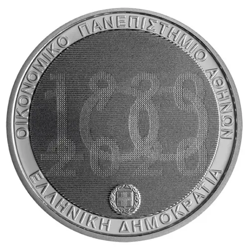 | Descripción del anverso | The design of the reverse side points the centenary of the foundation of Athens University of Economics and Business marking its foundation date and the issuing date, along with the insignia/ emblem of the Hellenic Republic. The design is encircled by lettering. |