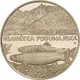 The reverse design is divided in half by the surface of a river, with a mountain landscape above and two Danube salmon below. On the right side of the water’s surface is the species’ scientific name ‘HUCHO HUCHO’, and below it, across the width of the field, is the Slovak name ‘HLAVÁTKA PODUNAJSKÁ’. The fish are shown swimming above a pebbled riverbed with aquatic plants on the left. At the right edge are the stylised initials ‘TL’ of the coin’s designer, Tomáš Lamač. |