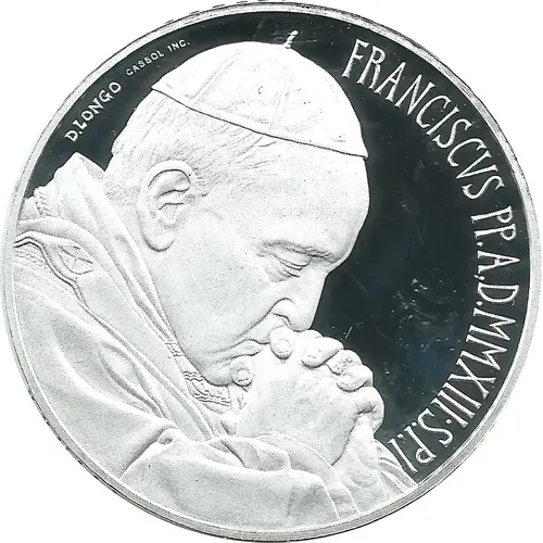 | Obverse description | The effigy of Pope Francis in prayer surrounded by the inscriptions `FRANCISCVS PP.A.D.MMXIII.S.P.I` and the names of the designer and engraver. |