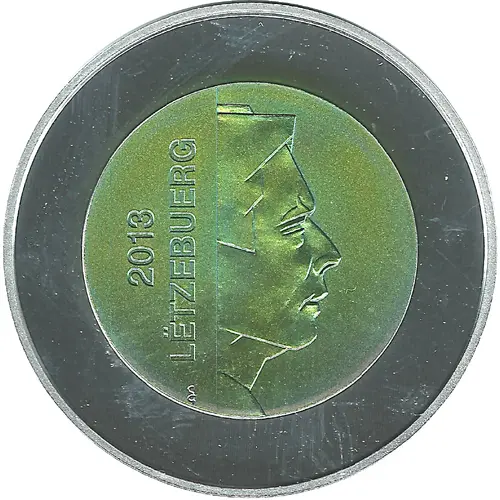 | توضیحات روی سکه | On the right half, a portrait with geometric features of his Royal Highness Grand Duke Henri is accompanied, on the left half, by the inscription: `LËTZEBUERG` and the year. |