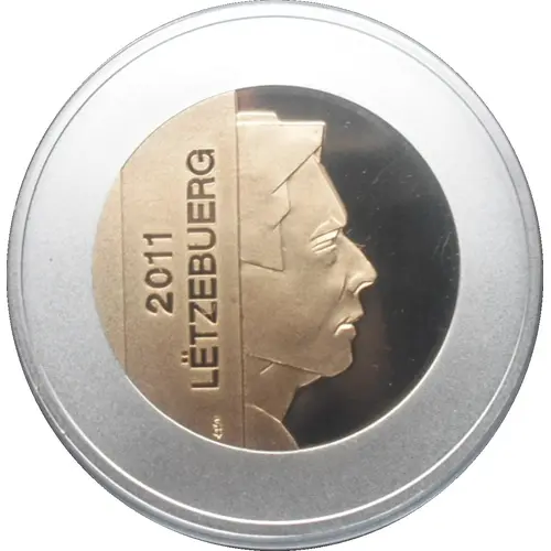 | Mô tả mặt trước | On the right half, a geometrically drawn portrait of His Royal Highness Grand Duke Henri is accompanied, on the left half, by the inscription: `LËTZEBUERG 2011`. |