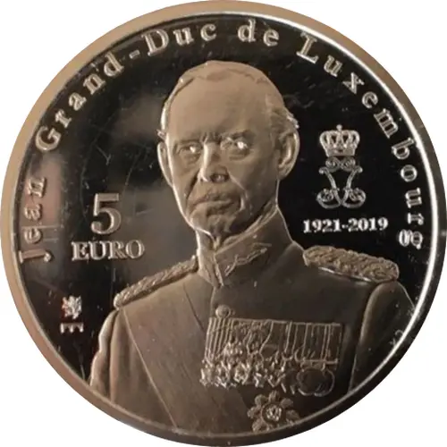 | Reverse lettering | Jean Grand Duc de Luxembourg 1921-2019 5 EURO H |