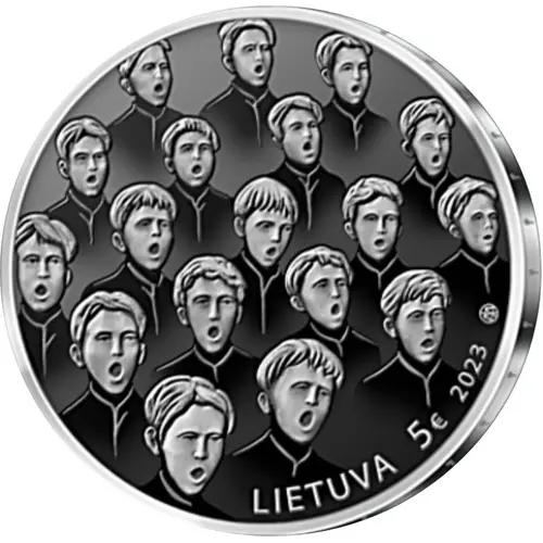 | Obverse description | The obverse of the coin depicts, using artistic means, the young singers of the Choir Ąžuoliukas, the composition is surrounded by inscriptions LIETUVA (Lithuania), the denomination (€5), the year of issue (2023) and the mintmark of the Lithuanian Mint. |