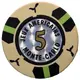 | Reverse description | Alternating beige token with palm and black token with green stripe, silver center. |