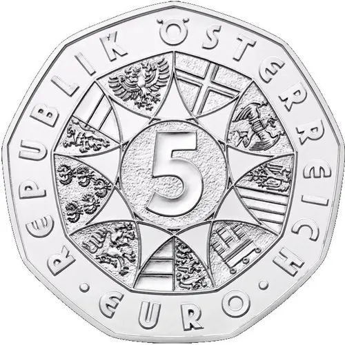| Obverse lettering | REPUBLIK ÖSTERREICH 5 · EURO · |