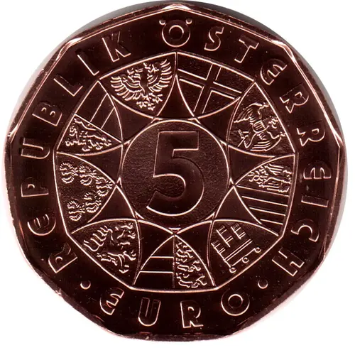 | Obverse lettering | REPUBLIK ÖSTERREICH 5 · EURO · |