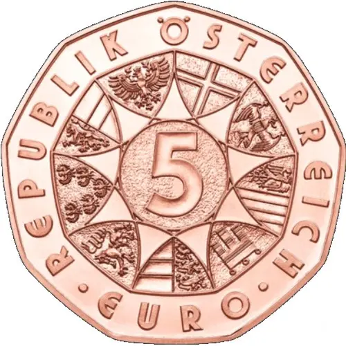 | Obverse lettering | REPUBLIK ÖSTERREICH 5 · EURO · (Translation: Republic of Austria) |