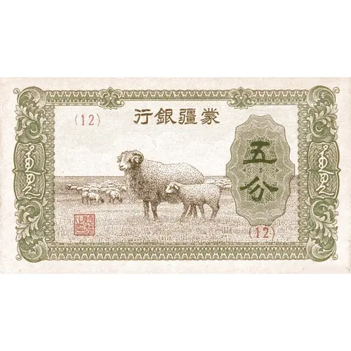 行銀疆蒙 五 分 (Translation: Mengchiang Bank Five Fen.) |