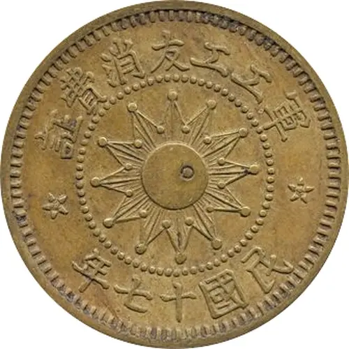 | Reverslegende | 證費消友工工軍 伍 分 年七十國民 (Translation: Military workers` ration token 5 Fen Year 17 of the Republic) |