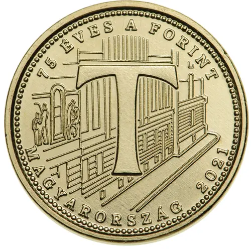 | Opis líce | 75 ÉVES A FORINT T MAGYARORSZÁG 2021 (Translation: 75 years of the forint - T - Hungary 2021) |
