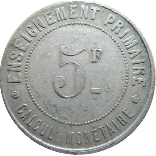 | Legenda awersu | ENSEIGNEMENT PRIMAIRE 5 F CALCUL MONÉTAIRE |