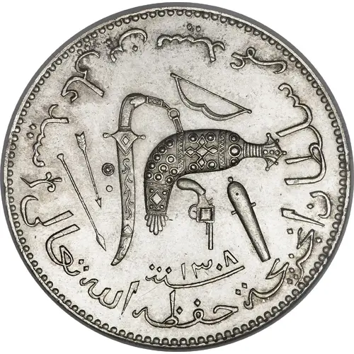 | Descripción del anverso | Diverse weapons with date below, within Arabic legend |