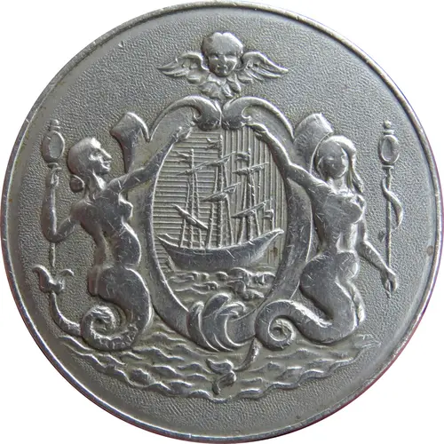 | Obverse description | Arms of the city of Dieppe, a three masted ship in a baroque frame surrounded by 2 Nereids. |