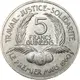 TRAVAIL - JUSTICE - SOLIDARITE 5 FRANCS GUINEENS LE PREMIER MARS 1960 (Translation: Work-Justice-Solidarity 5 Guinean Francs 1 March 1960) |