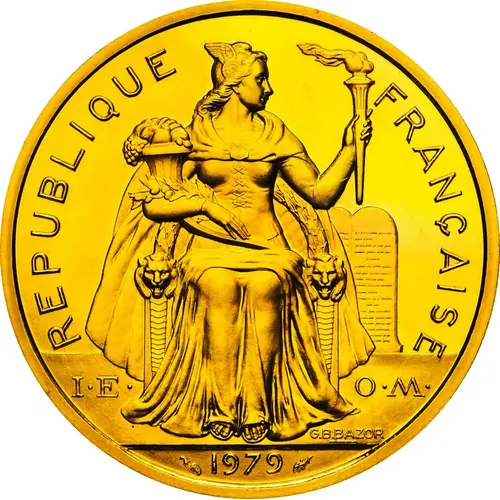| Obverse lettering | REPUBLIQUE FRANÇAISE I·E· O·M· G.B.BAZOR 1979 |