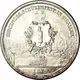 A lictor beam in the center of a shield, placed on a wreath of oak and laurel branches and two crossed rifles, all topped by the Swiss cross. Behind a view of a village with a crowd marching. German legends above and vintage below. |