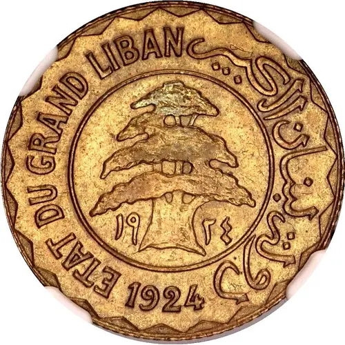 | Obverse lettering | ETAT DU GRAND LIBAN دولة لبنان الكبير 1924 (Translation: State of Greater Lebanon) |