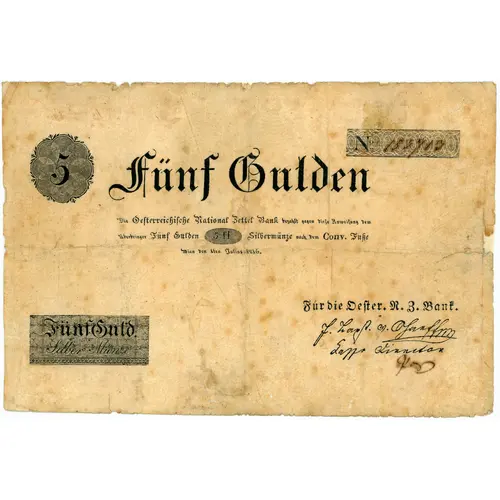 | Leyenda del anverso | 5 Fünf Gulden Wien den 1ten Julius 1816. |
