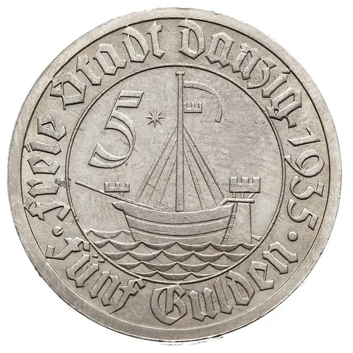 Freie Stadt Danzig · 1935 ·Fünf Gulden· 5 (Translation: Free city of Danzig, Five Gulden) |