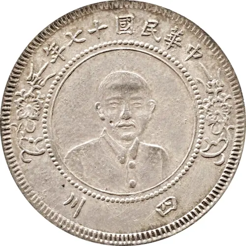 | Obverse description | Bust of Sun Yat-sen partially facing right with florals on either side, all surrounded by Chinese ideograms. |