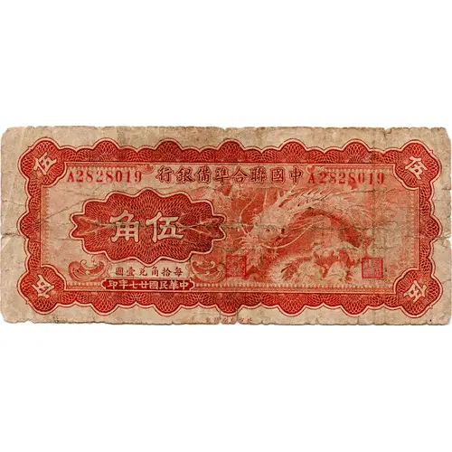 5 FIFTY CENTS BUREAU OF ENGRAVING AND PRINTING PEKING CHINA |