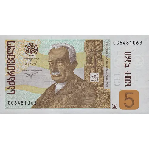 | Надписи оборотной стороны | 5 ხუთი ლარი GEORGIA Five Lari 5 თბილისის უნივერსიტეტი (Translation: Five lari Tbilisi University) |