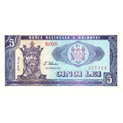 BANCA MATIONALA A MOLDOVEI 5 1992 STEFAN CEL MARE GUVERNATOR CINCI LEI FALSIFICAREA ACESTOR BILETE SE PEDEPSESTE CONFORM LEGILOR |