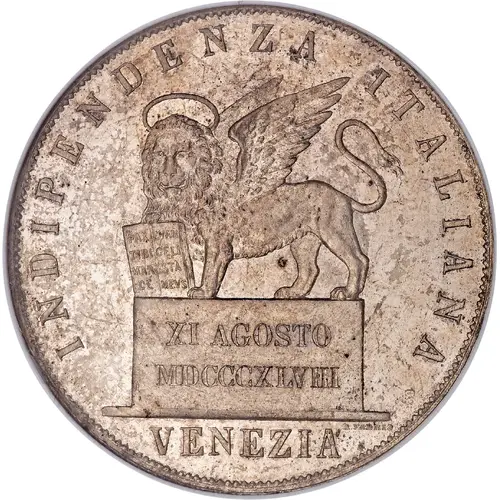 | Obverse lettering | INDIPENDENZA ITALIANA Pax tibi Marce, evangelista meus XI AGOSTO MDCCCXLVIII VENEZIA A. FABRIS |