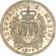 San Marino standing with a scroll in his hand. On the line the name of the author. Below, in the exergue the value between a rosette and the mintmark. |