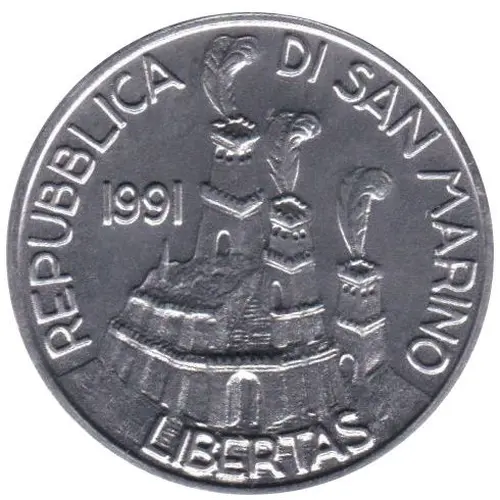 | Obverse lettering | REPUBBLICA DI SAN MARINO 1991 LIBERTAS |