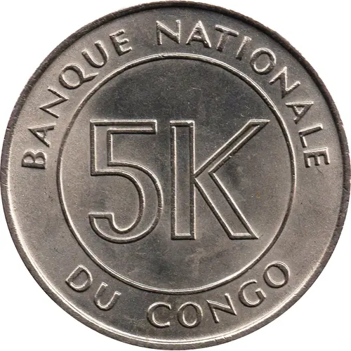 | Chữ khắc mặt trước | BANQUE NATIONALE DU CONGO 5 K (Translation: National Bank of the Congo) |